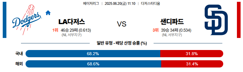LA다저스 대 샌디에이고 MLB 06월20일 맞대결 생중계, 스포츠중계, 스포츠분석