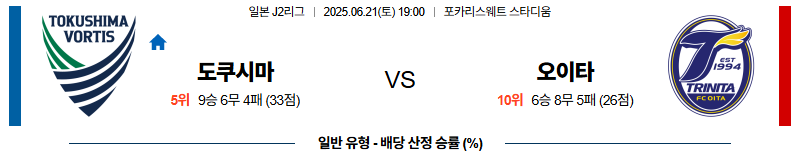 도쿠시마 대 오이타 J리그2 06월21일 맞대결 생중계, 스포츠중계, 스포츠분석