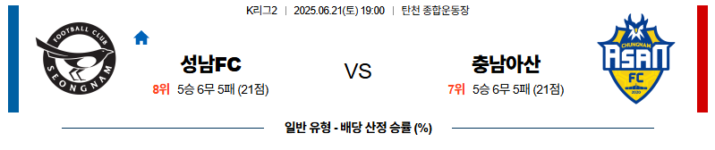성남 대 충남아산 K리그2 06월21일 맞대결 생중계, 스포츠중계, 스포츠분석