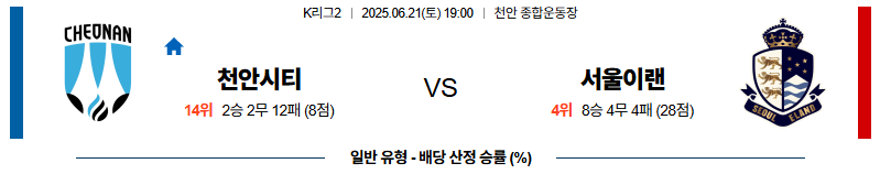 천안 대 서울이랜드 K리그2 06월21일 맞대결 생중계, 스포츠중계, 스포츠분석