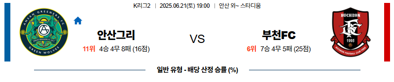 안산 대 부천 K리그2 06월21일 맞대결 생중계, 스포츠중계, 스포츠분석