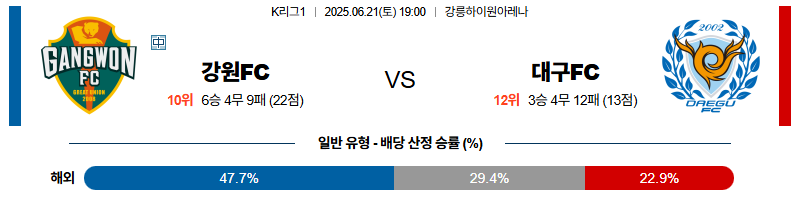 강원 대 대구 K리그1 06월21일 맞대결 생중계, 스포츠중계, 스포츠분석