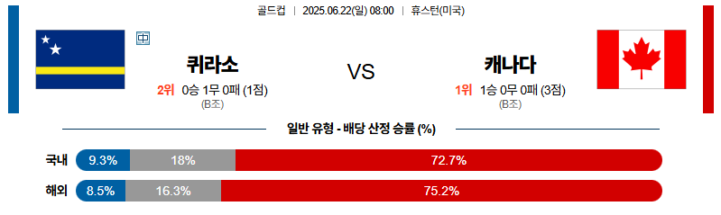 퀴라소 대 캐나다 골드컵 06월22일 맞대결 생중계, 스포츠중계, 스포츠분석