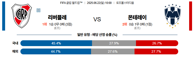 리버플레이트 대 몬테레이 FIFA클럽월드컵 06월22일 맞대결 생중계, 스포츠중계, 스포츠분석