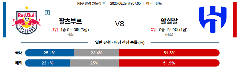 잘츠부르크 대 알힐랄 FIFA클럽월드컵 06월23일 맞대결 생중계, 스포츠중계, 스포츠분석