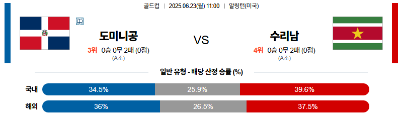도미니카공화국 대 수리남 골드컵 06월23일 맞대결 생중계, 스포츠중계, 스포츠분석