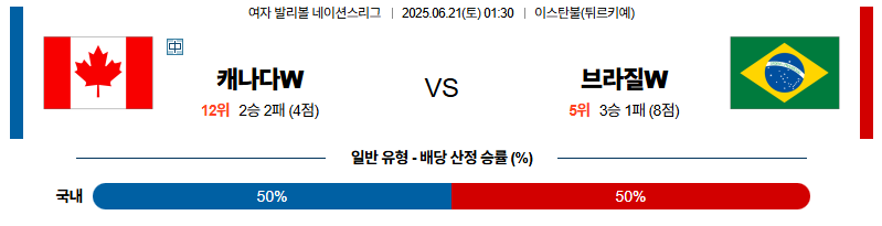 캐나다 대 브라질 네이션스리그(w) 06월21일 맞대결 생중계, 스포츠중계, 스포츠분석