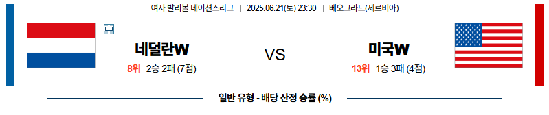 네덜란드 대 미국 네이션스리그(w) 06월21일 맞대결 생중계, 스포츠중계, 스포츠분석