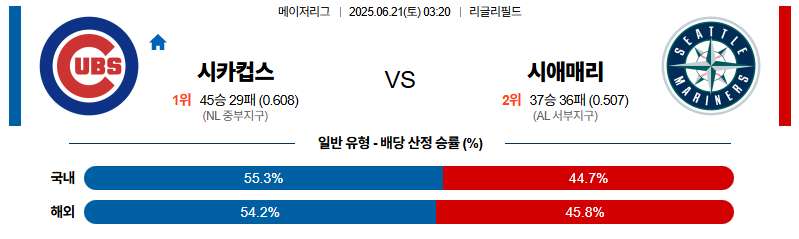 시카고컵스 대 시애틀 MLB 06월21일 맞대결 생중계, 스포츠중계, 스포츠분석