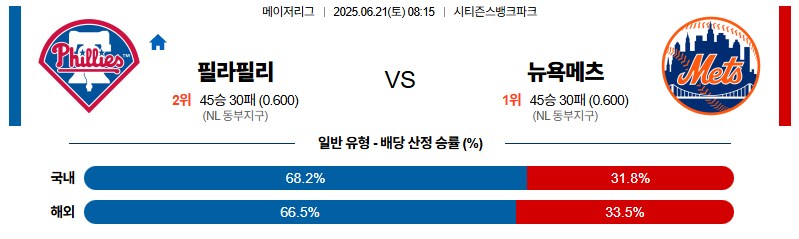 필라델피아 대 뉴욕메츠 MLB 06월21일 맞대결 생중계, 스포츠중계, 스포츠분석