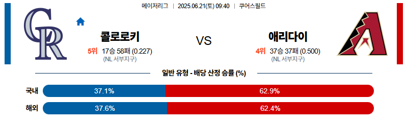 콜로라도 대 애리조나 MLB 06월21일 맞대결 생중계, 스포츠중계, 스포츠분석