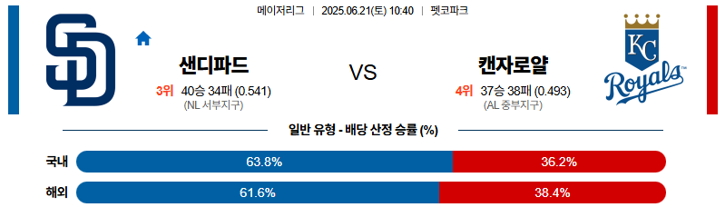 샌디에이고 대 캔자스시티 MLB 06월21일 맞대결 생중계, 스포츠중계, 스포츠분석