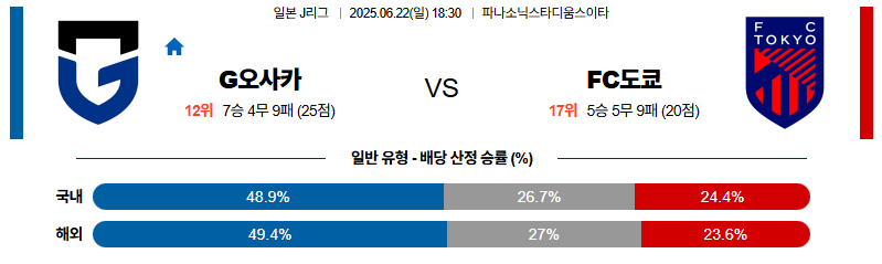 감바오사카 대 FC도쿄 J리그1 06월22일 맞대결 생중계, 스포츠중계, 스포츠분석