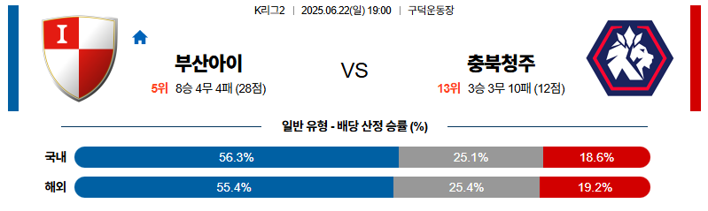 부산 대 충북청주 K리그2 06월22일 맞대결 생중계, 스포츠중계, 스포츠분석