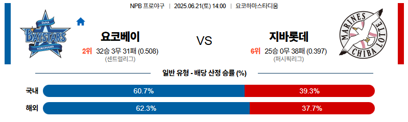 요코하마 대 지바롯데 NPB 06월21일 맞대결 생중계, 스포츠중계, 스포츠분석