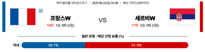프랑스 대 세르비아 네이션스리그(w) 06월22일 맞대결 생중계, 스포츠중계, 스포츠분석