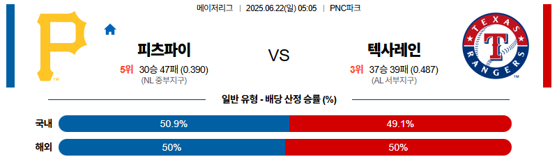피츠버그 대 텍사스 MLB 06월22일 맞대결 생중계, 스포츠중계, 스포츠분석