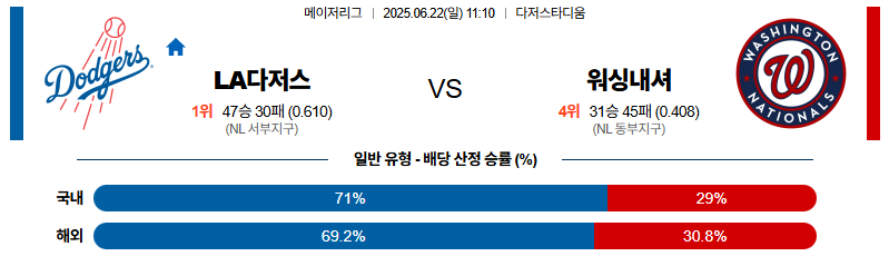 LA다저스 대 워싱턴 MLB 06월22일 맞대결 생중계, 스포츠중계, 스포츠분석