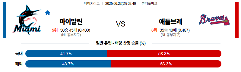 마이애미 대 애틀랜타 MLB 06월23일 맞대결 생중계, 스포츠중계, 스포츠분석