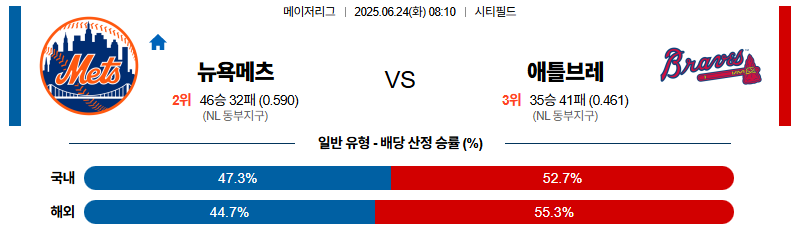 뉴욕메츠 대 애틀랜타 MLB 06월24일 맞대결 생중계, 스포츠중계, 스포츠분석