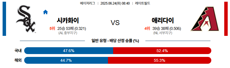시카고W 대 애리조나 MLB 06월24일 맞대결 생중계, 스포츠중계, 스포츠분석