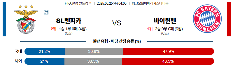 벤피카 대 바이에른뮌헨 FIFA클럽월드컵 06월25일 맞대결 생중계, 스포츠중계, 스포츠분석