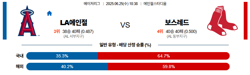LA에인절스 대 보스턴 MLB 06월25일 맞대결 생중계, 스포츠중계, 스포츠분석