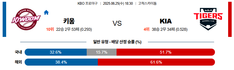 키움 대 KIA KBO 06월25일 맞대결 생중계, 스포츠중계, 스포츠분석