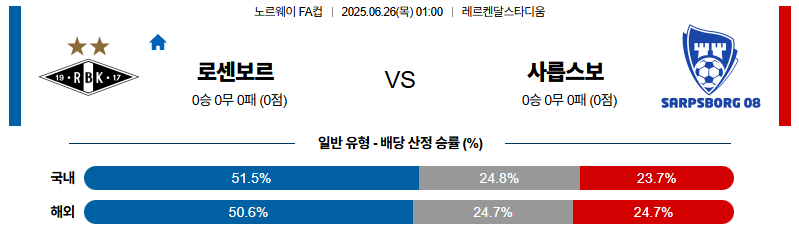 로젠보르그 대 사릅스보르그 노르웨이FA컵 06월26일 맞대결 생중계, 스포츠중계, 스포츠분석