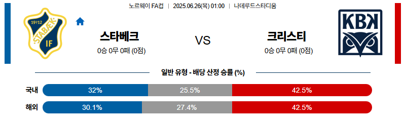 스타벡 대 크리스티안순 노르웨이FA컵 06월26일 맞대결 생중계, 스포츠중계, 스포츠분석