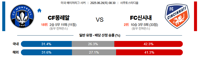 몬트리올 대 신시내티 메이저리그사커 06월26일 맞대결 생중계, 스포츠중계, 스포츠분석