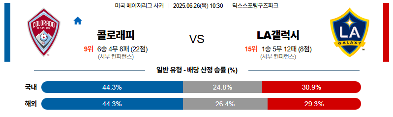 콜로라도 대 LA갤럭시 메이저리그사커 06월26일 맞대결 생중계, 스포츠중계, 스포츠분석