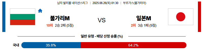 불가리아 대 일본 네이션스리그 06월26일 맞대결 생중계, 스포츠중계, 스포츠분석