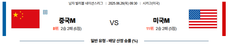 중국 대 미국 네이션스리그 06월26일 맞대결 생중계, 스포츠중계, 스포츠분석