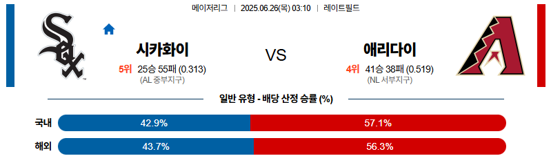 시카고W 대 애리조나 MLB 06월26일 맞대결 생중계, 스포츠중계, 스포츠분석