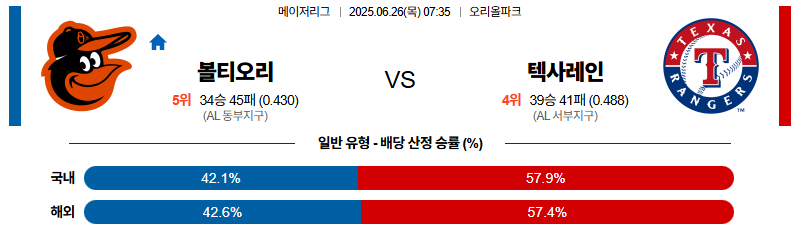 볼티모어 대 텍사스 MLB 06월26일 맞대결 생중계, 스포츠중계, 스포츠분석