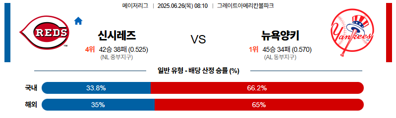 신시내티 대 뉴욕양키스 MLB 06월26일 맞대결 생중계, 스포츠중계, 스포츠분석
