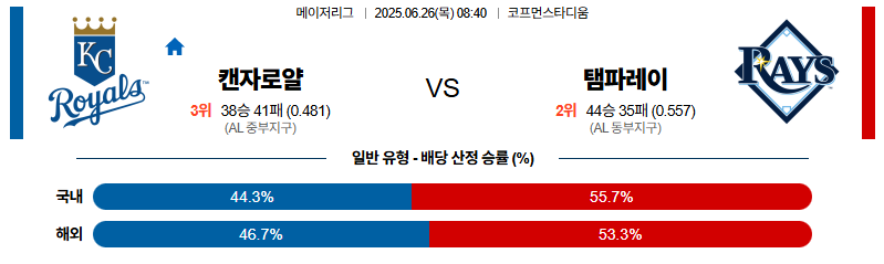 캔자스시티 대 탬파베이 MLB 06월26일 맞대결 생중계, 스포츠중계, 스포츠분석