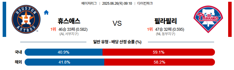 휴스턴 대 필라델피아 MLB 06월26일 맞대결 생중계, 스포츠중계, 스포츠분석