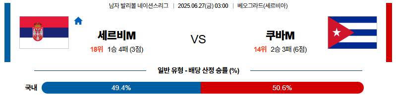 세르비아 대 쿠바 네이션스리그 06월27일 맞대결 생중계, 스포츠중계, 스포츠분석