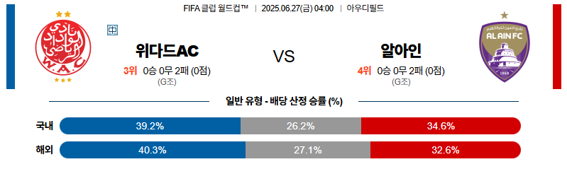 위다드 대 알아인 FIFA클럽월드컵 06월27일 맞대결 생중계, 스포츠중계, 스포츠분석