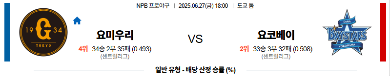 요미우리 대 요코하마 NPB 06월27일 맞대결 생중계, 스포츠중계, 스포츠분석