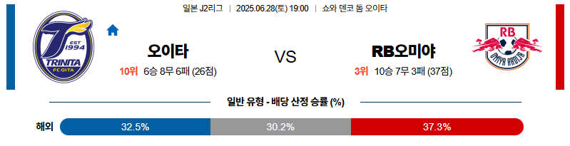 오이타 대 오미야 J리그2 06월28일 맞대결 생중계, 스포츠중계, 스포츠분석