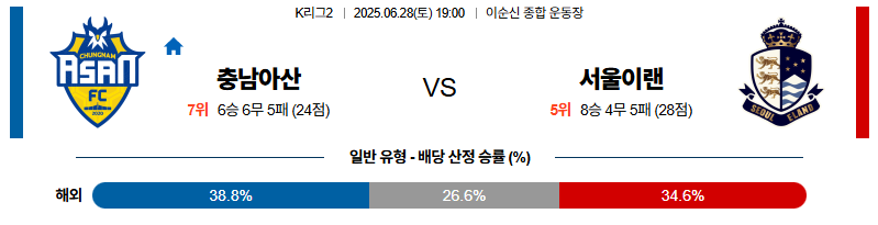 충남아산 대 서울이랜드 K리그2 06월28일 맞대결 생중계, 스포츠중계, 스포츠분석