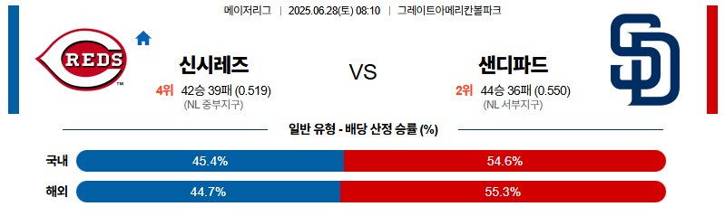 신시내티 대 샌디에이고 MLB 06월28일 맞대결 생중계, 스포츠중계, 스포츠분석