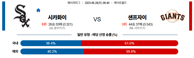 시카고W 대 샌프란시스코 MLB 06월28일 맞대결 생중계, 스포츠중계, 스포츠분석