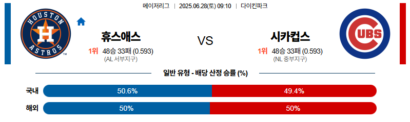 휴스턴 대 시카고컵스 MLB 06월28일 맞대결 생중계, 스포츠중계, 스포츠분석