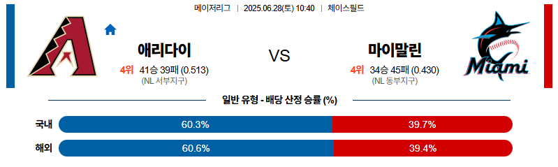 애리조나 대 마이애미 MLB 06월28일 맞대결 생중계, 스포츠중계, 스포츠분석