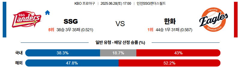 SSG 대 한화 KBO 06월28일 맞대결 생중계, 스포츠중계, 스포츠분석