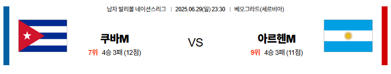 쿠바 대 아르헨티나 네이션스리그 06월29일 맞대결 생중계, 스포츠중계, 스포츠분석